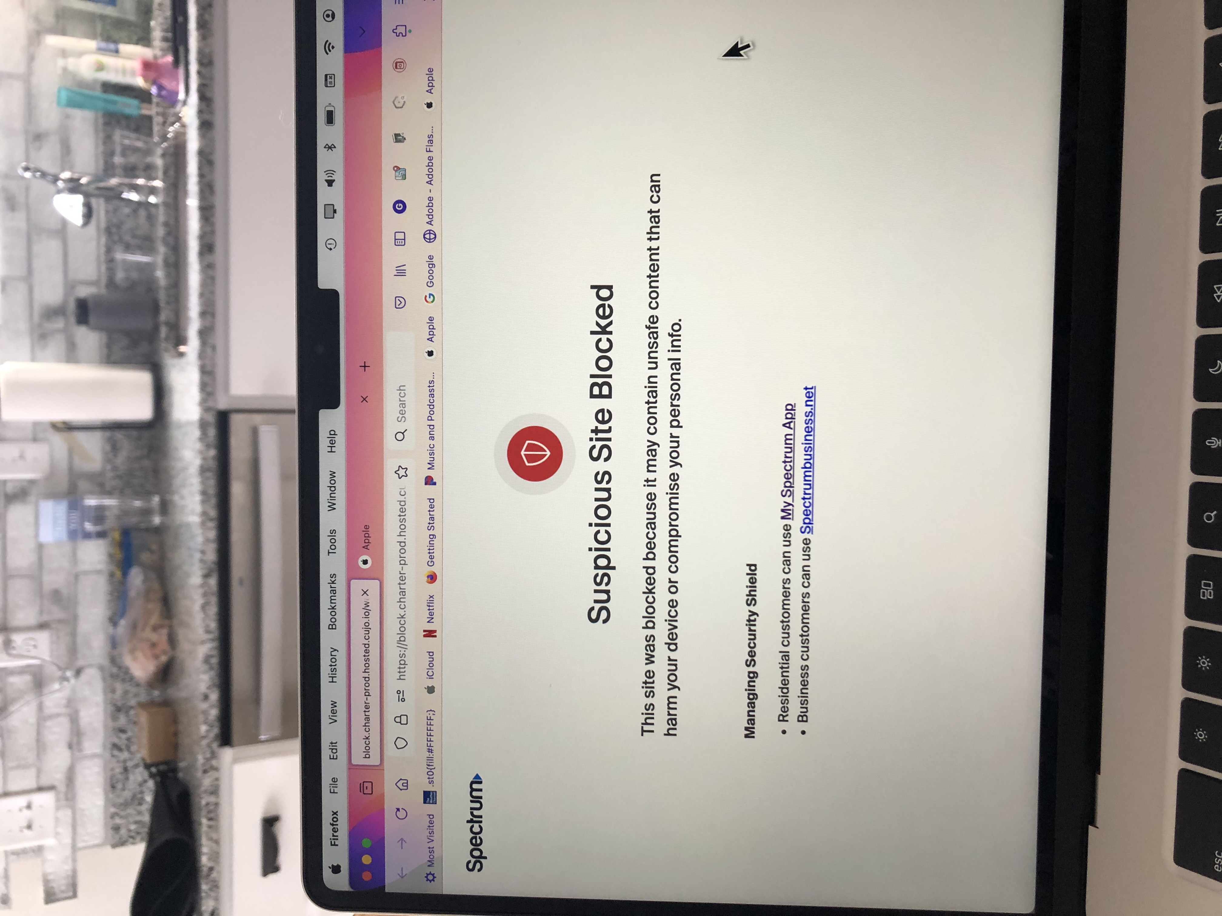 That is from Spectrum not from Firefox-you need to contact them about that message.