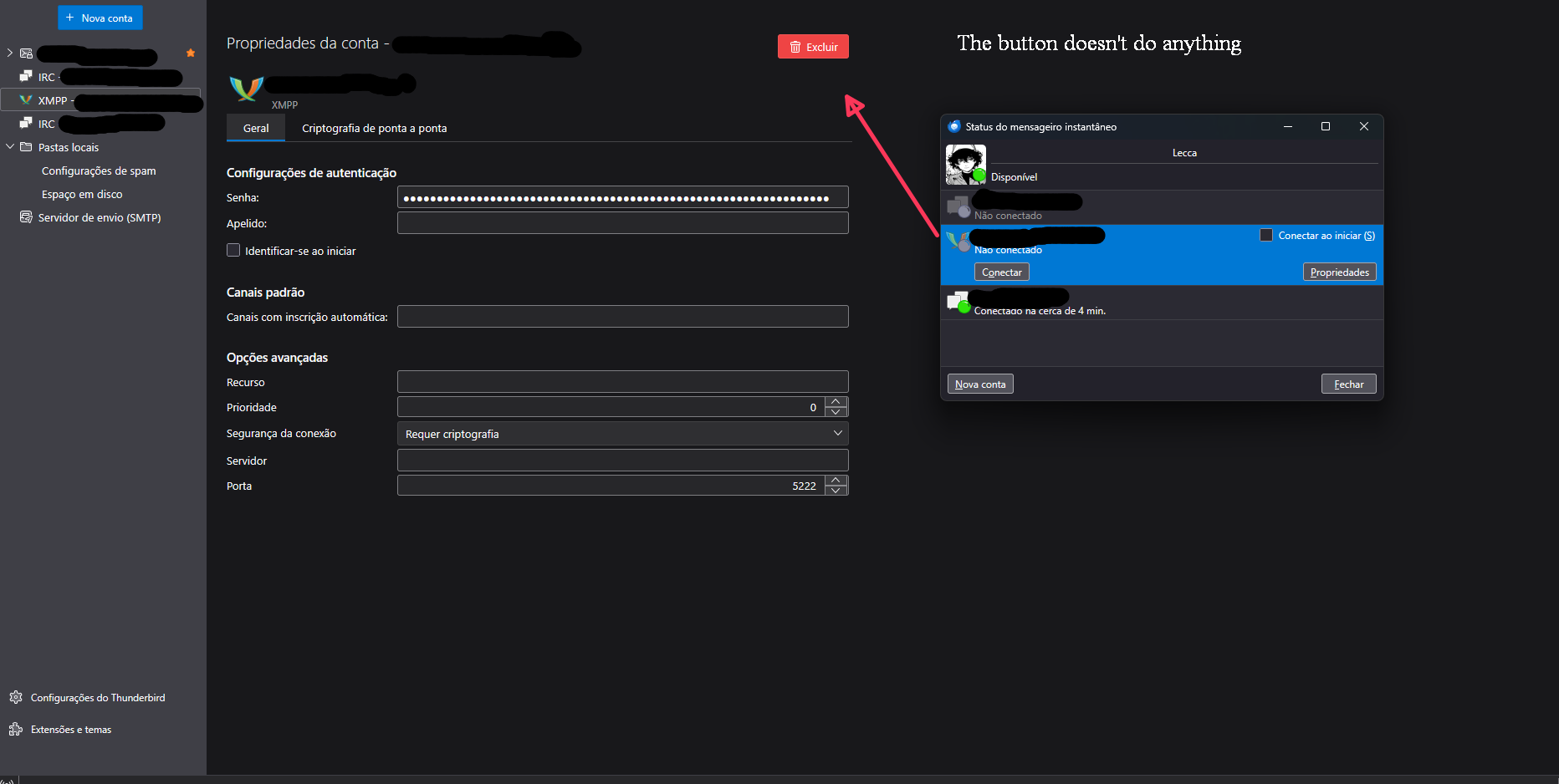I try using a old account on XMPP but the account was deleted as I confirmed later, but I can't delete that chat account on Thunderbird.