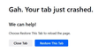 Hello, after the most recent Firefox update, and it doesn't happen with every web page but it seems to be most frequent on ones I have never visited, that I get a tab that says "Gah! Your tab just crashed". If I close the browser and reopen it, then reload the crashed tab from my recent History, it seems to work. Anyone else experiencing this (Win 10 Pro 64x desktop PC)?
