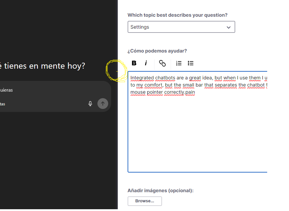 Integrated chatbots are a great idea, but when I use them I usually change their width in the browser according to my comfort, but the small bar that separates the chatbot from the web tab is very difficult to position the mouse pointer correctly.
