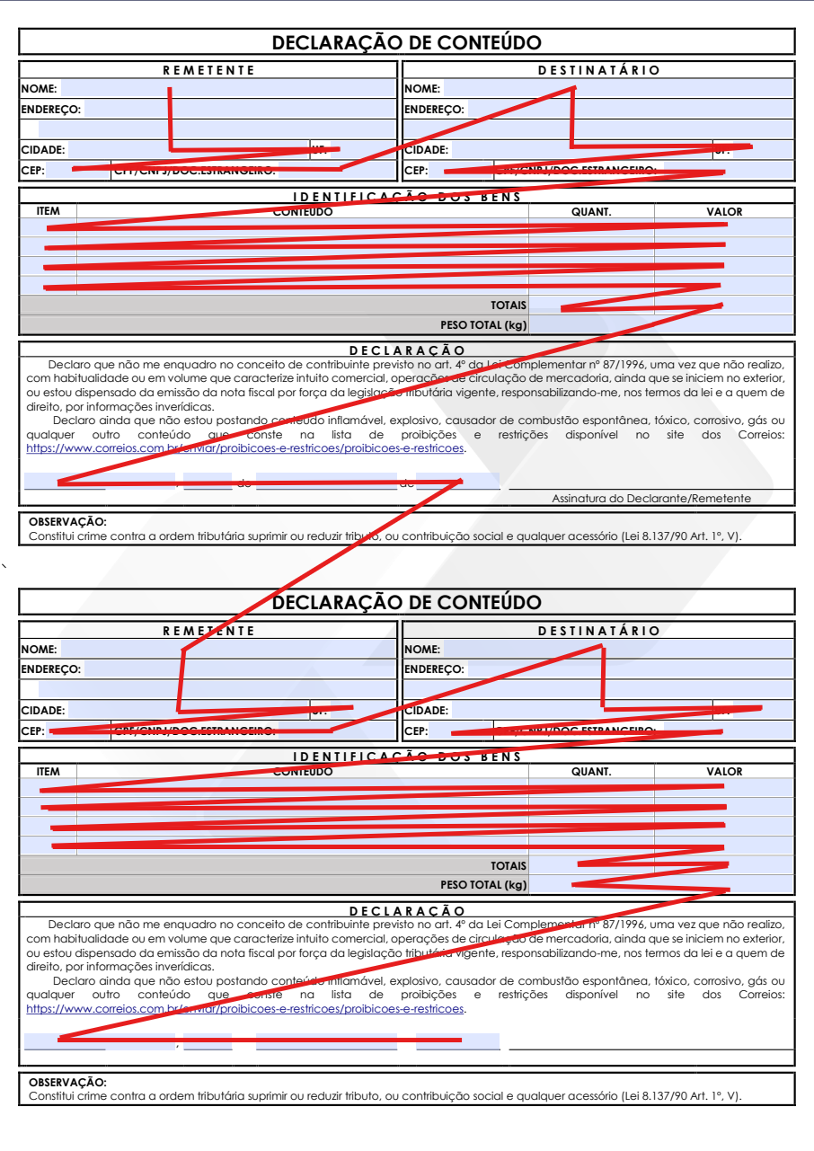 I'm testing a PDF file from the Brazilian Post Office for declaring the contents of shipped goods. I added the form to the official document to streamline some processes, for example, by avoiding having to enter the same data in the second block, as the data is replicated from the first. The form has an intuitive navigation sequence, so that the sender and recipient data are entered, all the sender fields are entered, and then the recipient fields are entered, followed by the shipped goods fields, as shown in the attached image (pdfscr.png). The problem is that Firefox alone doesn't recognize the tabbed navigation order, instead using line-level navigation (pdfscr2.png).