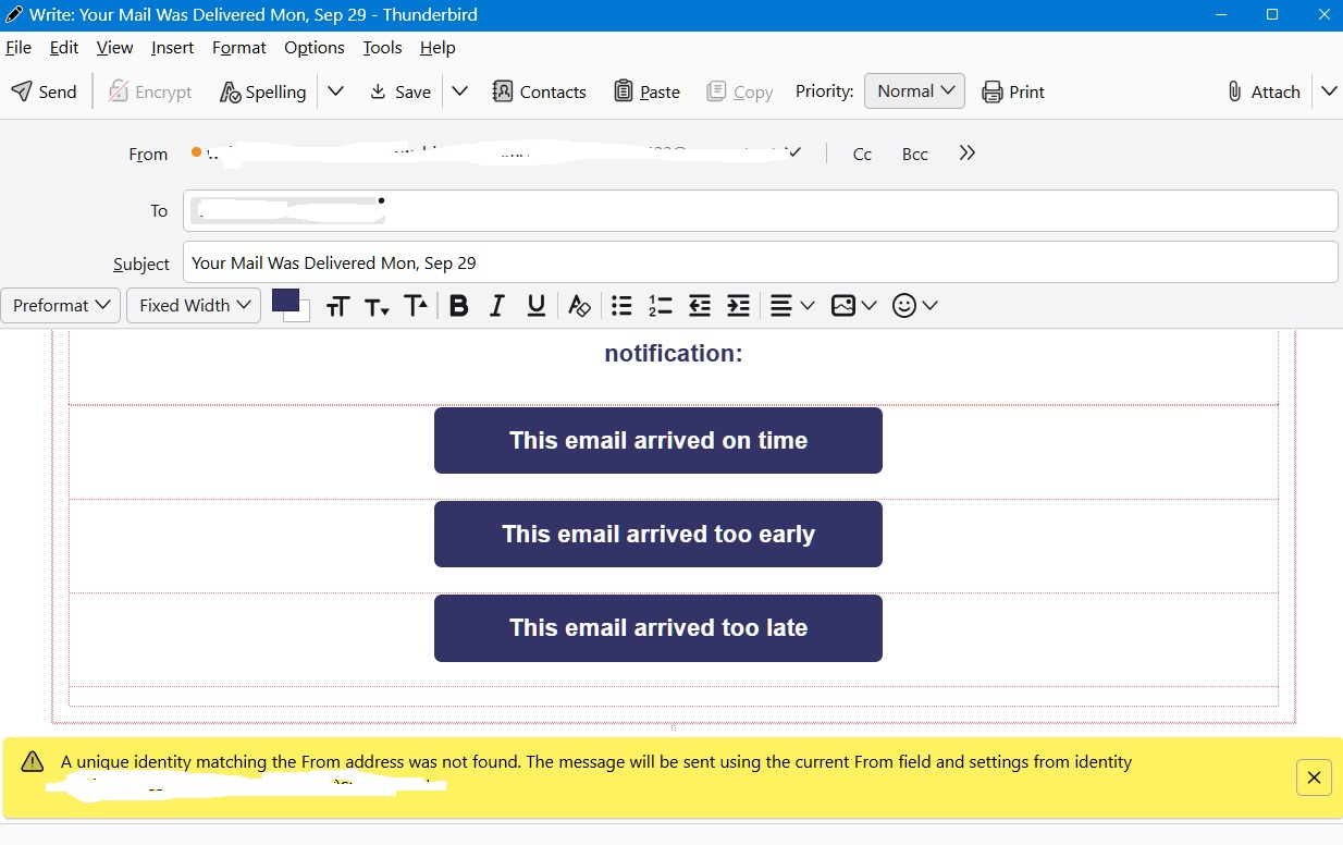 I have multiple email accounts; I always see the annoying yellow message telling me a "unique identity matching the from address was not found"