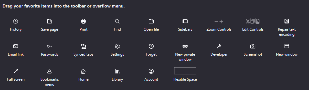 But that's not what's happening here. Here's what my browser shows when I select "Customize toolbar":