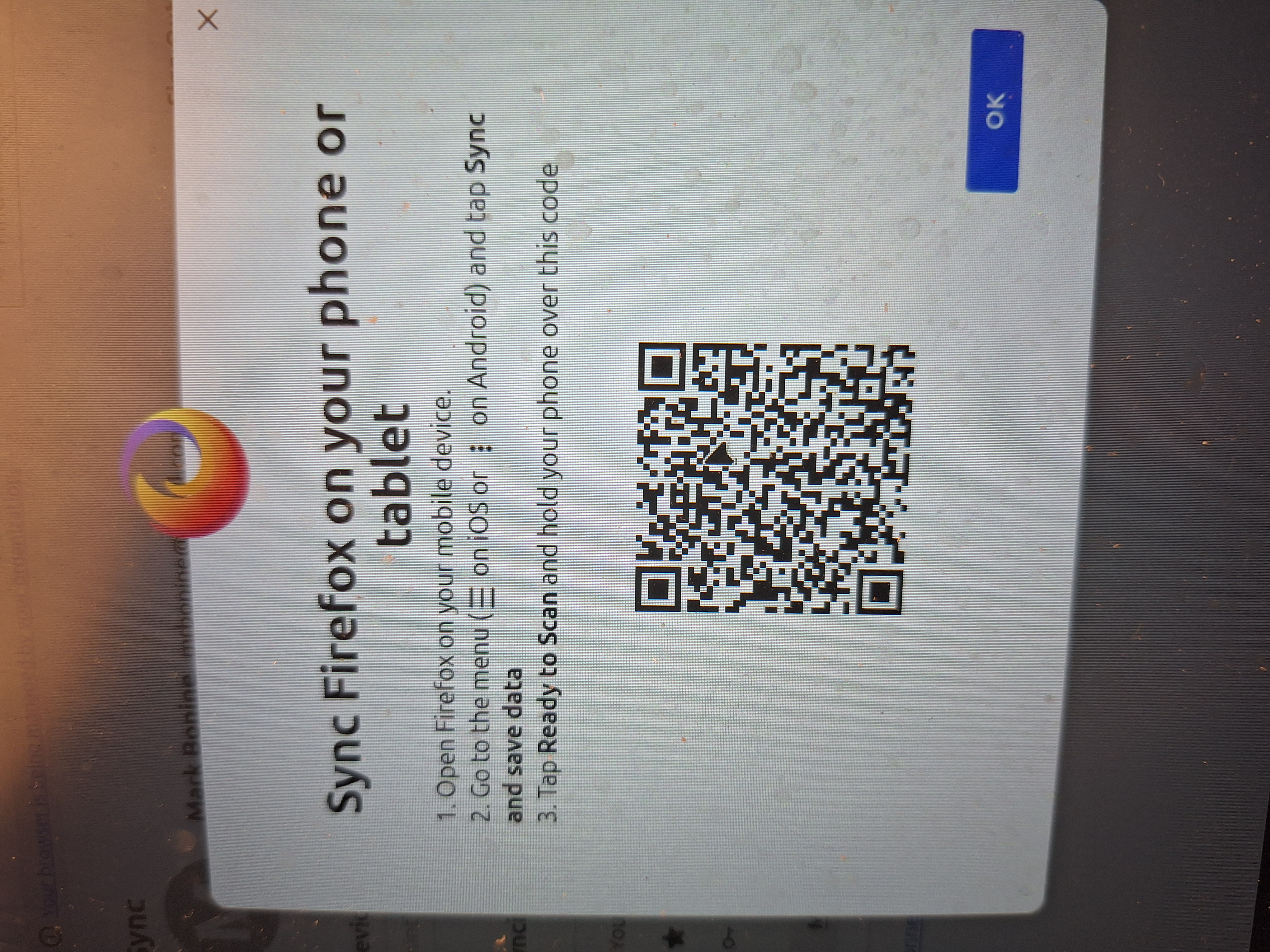Running Mint on a removable drive on Win 11 machine. Launched Firefox and wanted to sync across devices. Finally ended up here (see attached). There's no "synch & save data" and the other sync at top of settings doesn't follow that path. The image on the Mint desktop doesn't scan within Firefox and using a separate scanner app produces a "do this within FF" error. Confusing and no way to resolve. I tried an extension scanner no help. Attachment shows Sync Now only possible method not correct (what I describe above).2nd image is what I see on PC screen (via Mint).