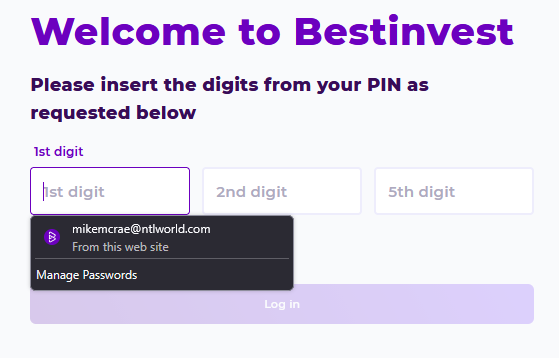 when trying to access my pension account after I have entered my details, the account asks for my PIN. I cannot enter a number as password manager pops up with the 'manage password box'.