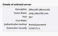 Server name: smtp.office365.com Port: 587 Encryption method: STARTTLS