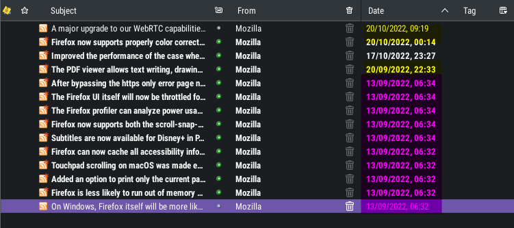 Yesterday by serendipity i stumbled across https://blog.thunderbird.net/2022/05/thunderbird-rss-feeds-guide-favorite-content-to-the-inbox/ and https://www.youtube.com/watch?v=rF3Yrguwy0M, from which i learned some cool tricks i'd previously not known for RSS in TB. Each time over the past several months that i'd tried importing my OPML file into TB RSS, i'd quickly abandoned it again coz of its excessive functional limitations. However those refs educated me on some of them, so yesterday i spent time trying again.