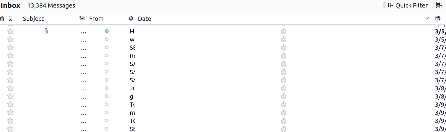 Hello, Many thanks for providing thunderbird. After the last update to 115.180.0 (Linux Mint 20) my inbox is shown in a way, that I can not read it anymore. I really do not how to describe it properly. So I attached a screenshot on the part I find difficult to read. I think there is a off by one between the column header an the content. Downgrading to a previous version was not possible - the profile was changed. Can I fix this myself - if yes how. Looking forward to your reply.