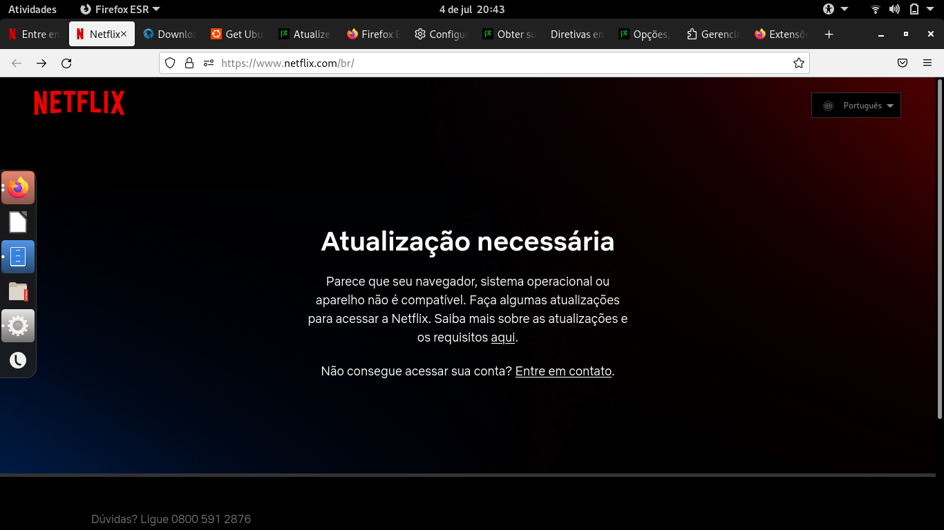 Estou tentando assistir filmes na Netflix pelo navegador, mas está pedindo para atualizar, contudo sigo o procedimento e não resolve o problema.
