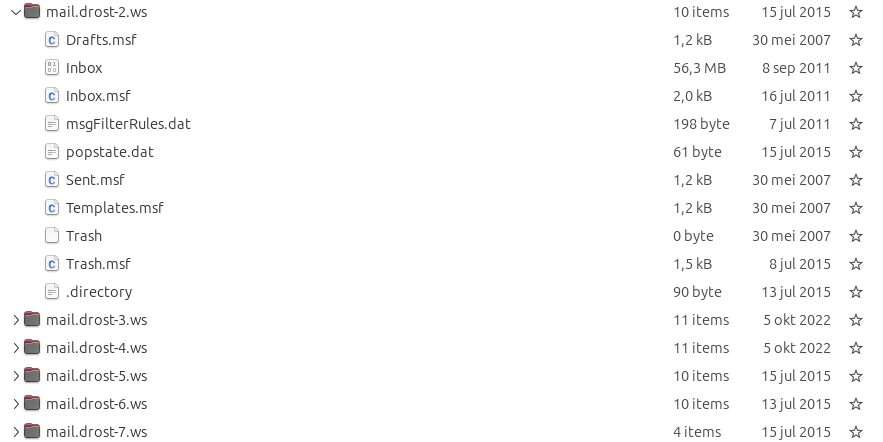 Dat lijken allemaal oude gegevens die wel gebruikt kunnen worden in Thunderbird. U kunt een nieuw account aanmaken en daarin verwijzen naar een van de mappen mail.drost... om te testen.