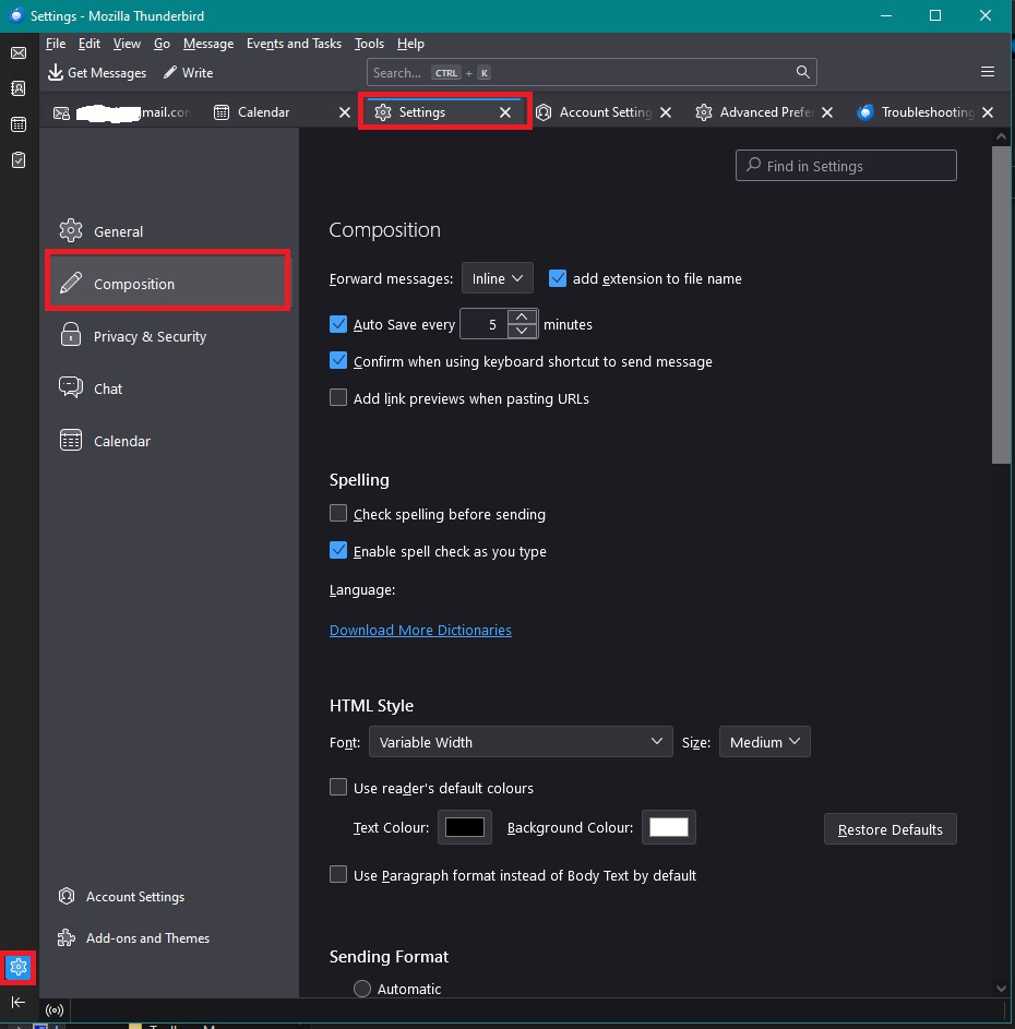 - Settings > Composition