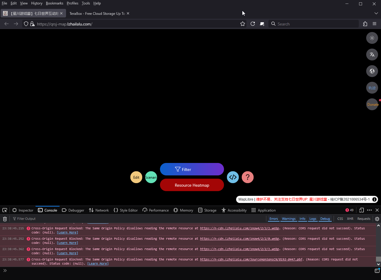 hello https://qrsj-map.lzhailalu.com/ black screen https://www.1024tera.com/ white screen, not loading