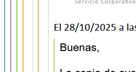 Hola Gerardo.... Me refiero a cambio visual...... Me gustaría que no me saliesen esas líneas ¿se pueden quitar para que no salgan en un hilo de correos? Pongo ejemplo de un hilo de correos en mi carpeta de enviados se ven esas líneas Gracias por todo Gerardo