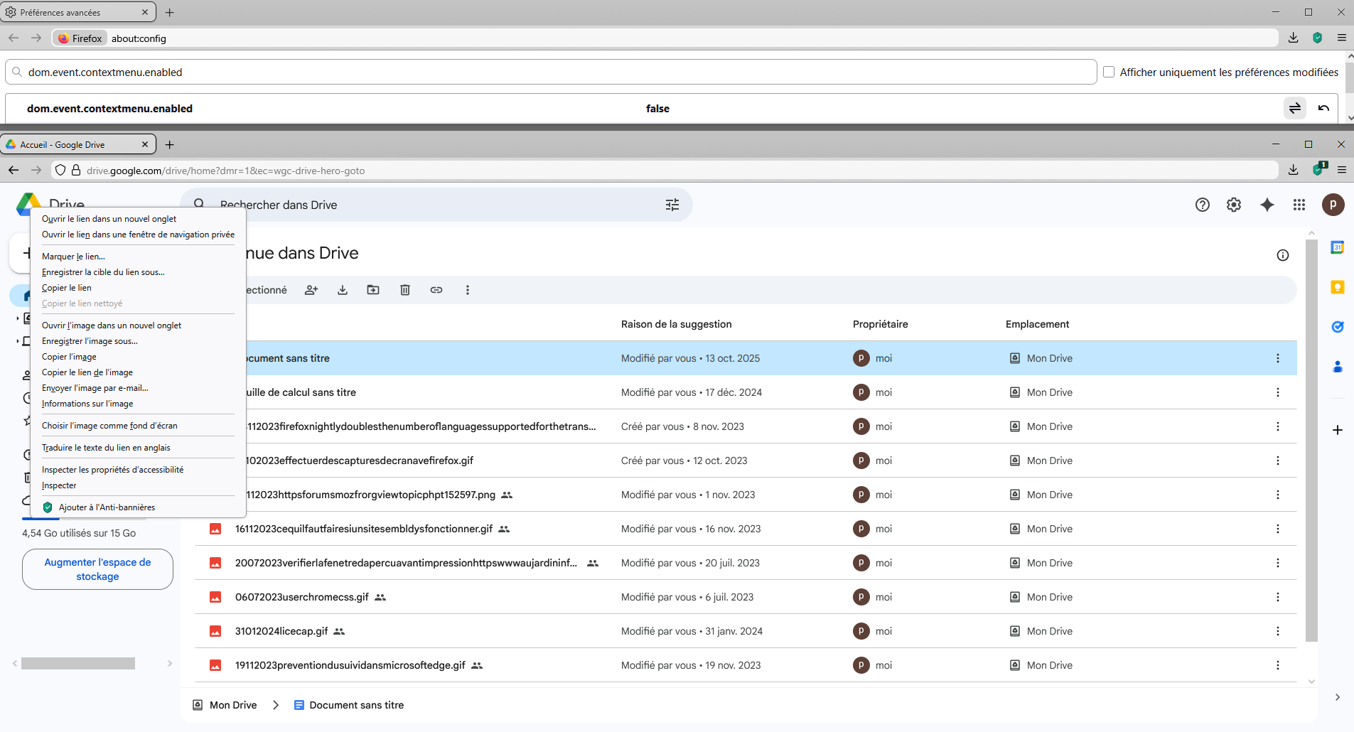 Hello https://support.mozilla.org/en-US/questions/1522790 You can try, the preference, dom.event.contextmenu.enabled value false. 1 - Go to Configuration Editor for Firefox https://support.mozilla.org/en-US/kb/about-config-editor-firefox 2 - Enter a search term dom.event.contextmenu.enabled