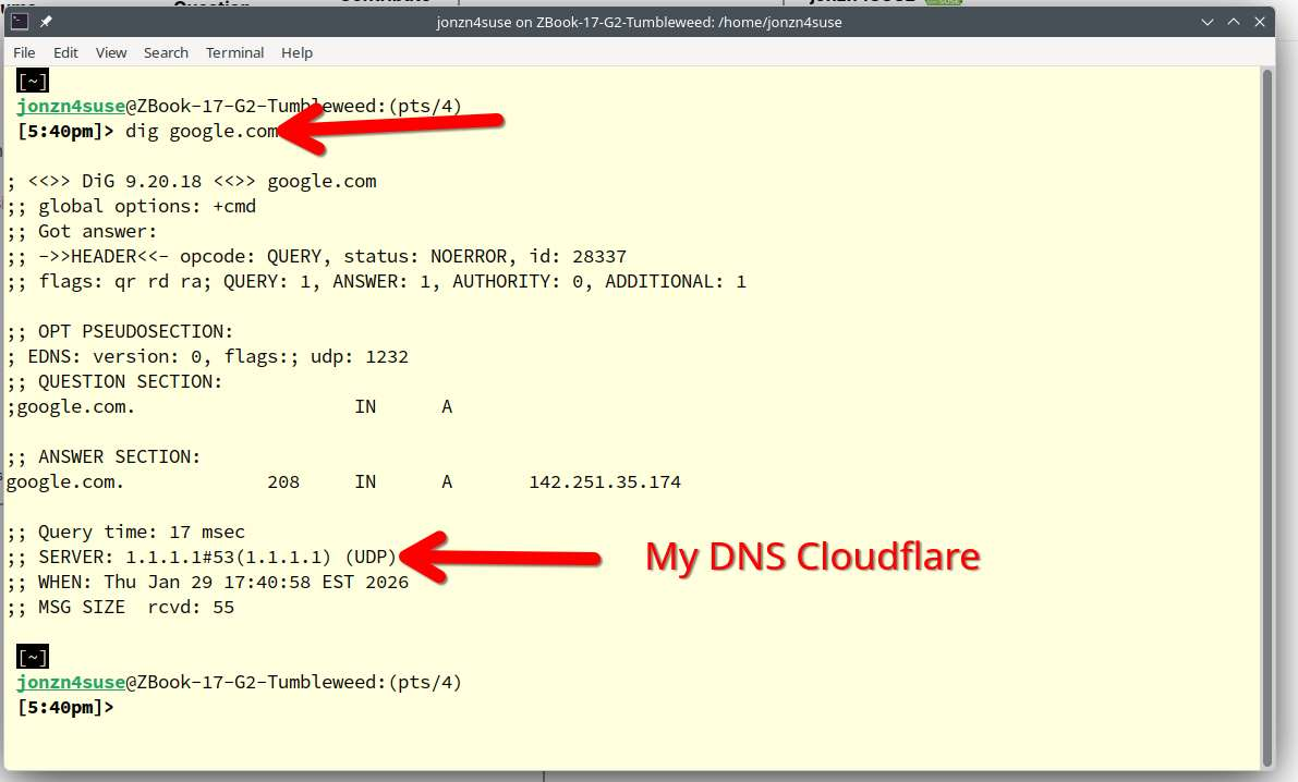 Mac... open a konsole or terminal and run the below cmd. see screenshot dig google.com