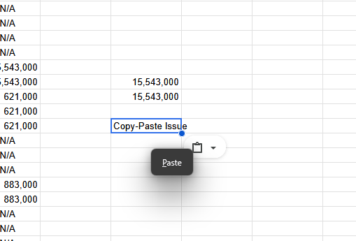 When copying from an outside tab then use paste value only into a Google Sheets tab, whether using shortcut or the drop down menu, it seems to first paste properly then show a "paste" dialog box that couldn't be removed. Any other input seems to paste again, taking from the last copy before the current one. Copying from another Google Sheets tab seems to have the same result but instead of the dialog box, it double paste, as described previously, immediately. Testing in Chrome seems to work as usual and clearing the cache has not help. Issues seems to arise since the latest update to Firefox.