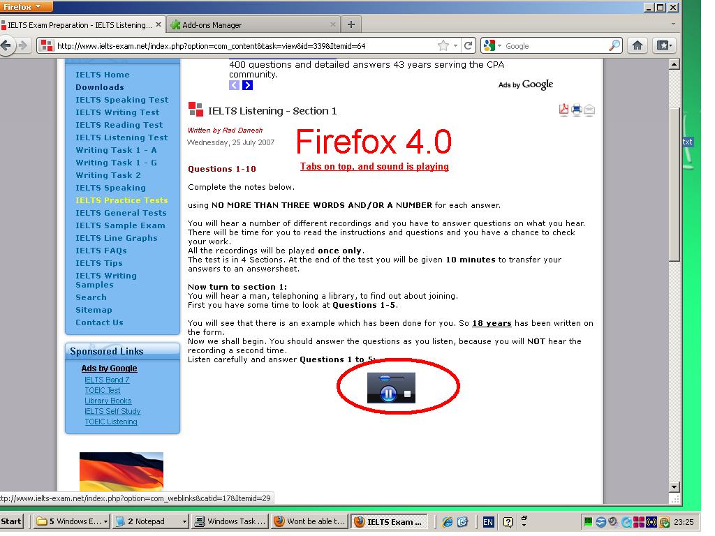 As you can see audio needs to be played, this has always worked with previous versions of firefox but not with firefox 4