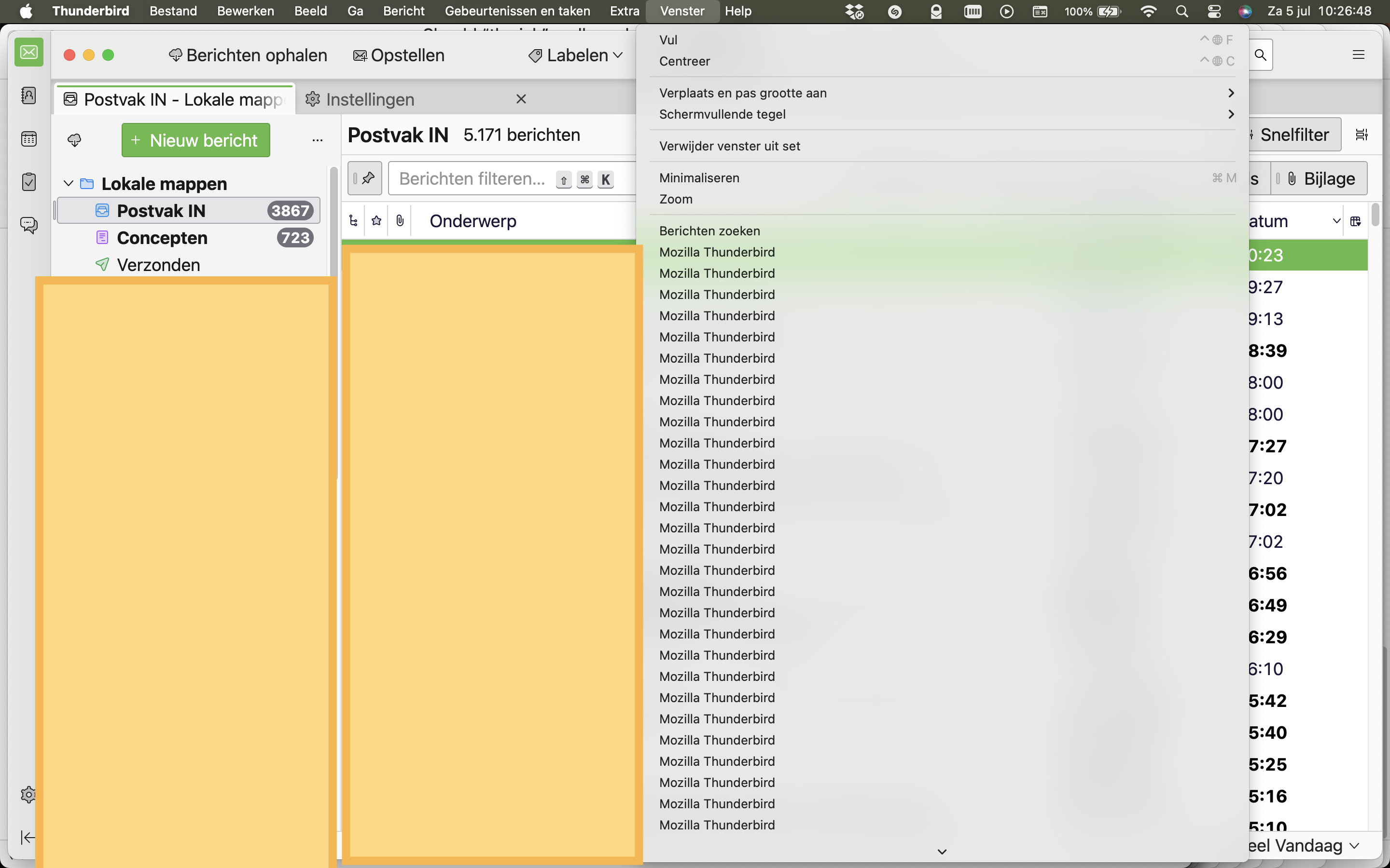 Dropdown 'Venster' in menubalk toont niet langer de subject line van de berichten.