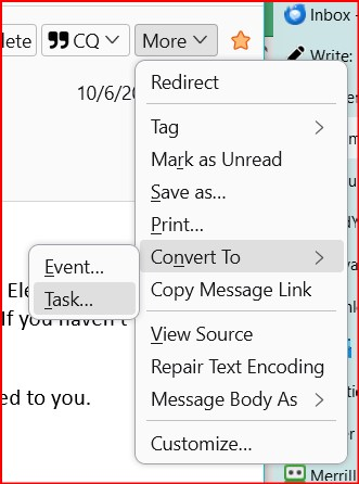 I want to mark an email to follow up and be reminded to review it. I tried converting to a task, but clicking the menu item did nothing. Is there another way?