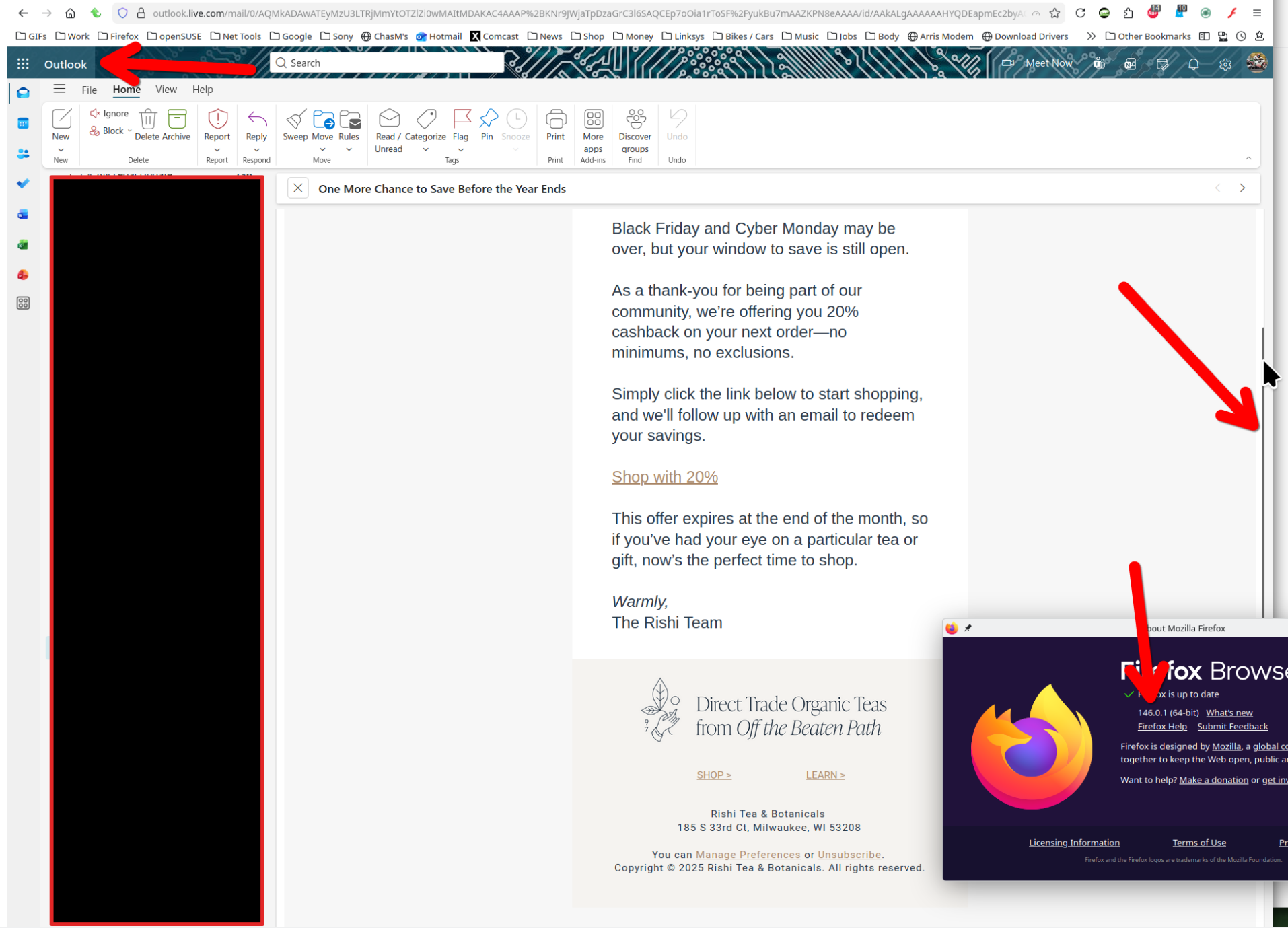 Web-based outlook.com side scrollbar missing after Firefox 146.0.1