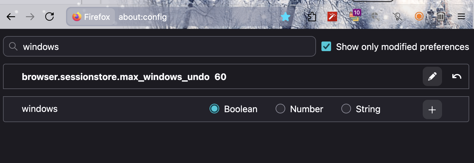 "Recently closed windows" context now only shows 25 windows when it's set to 60 in about:config
