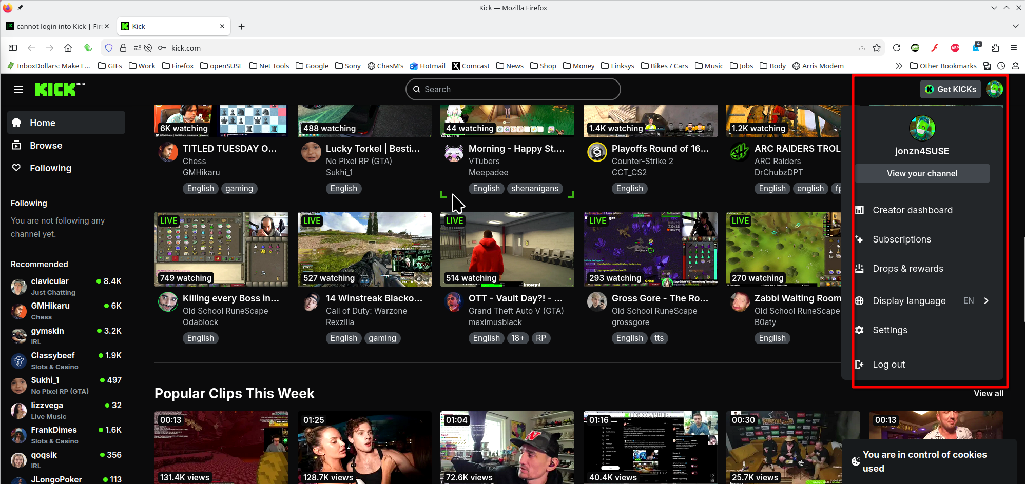 cannot login into Kick