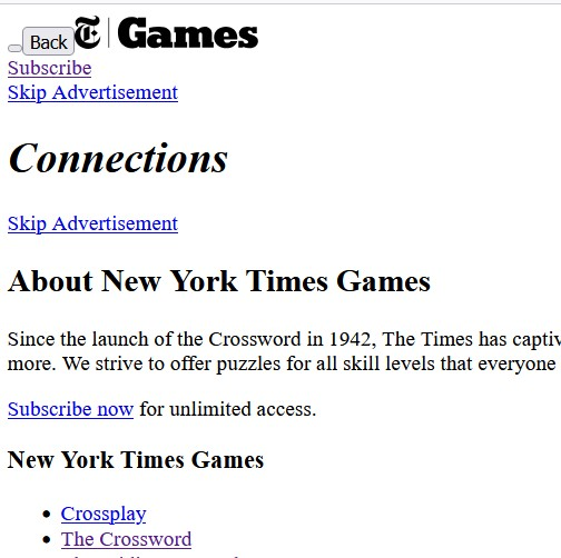 Similarly, but not quite the same, Connections (https://www.nytimes.com/games/connections?GAMES_connectionsRollout_1130=1_ConnectionsV2) displays non-HTML formatted text, see added image.