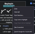 attached is a screenshot of the wikipedia page showing in firefox on windows 10, and the right-click window displaying the script correctly.