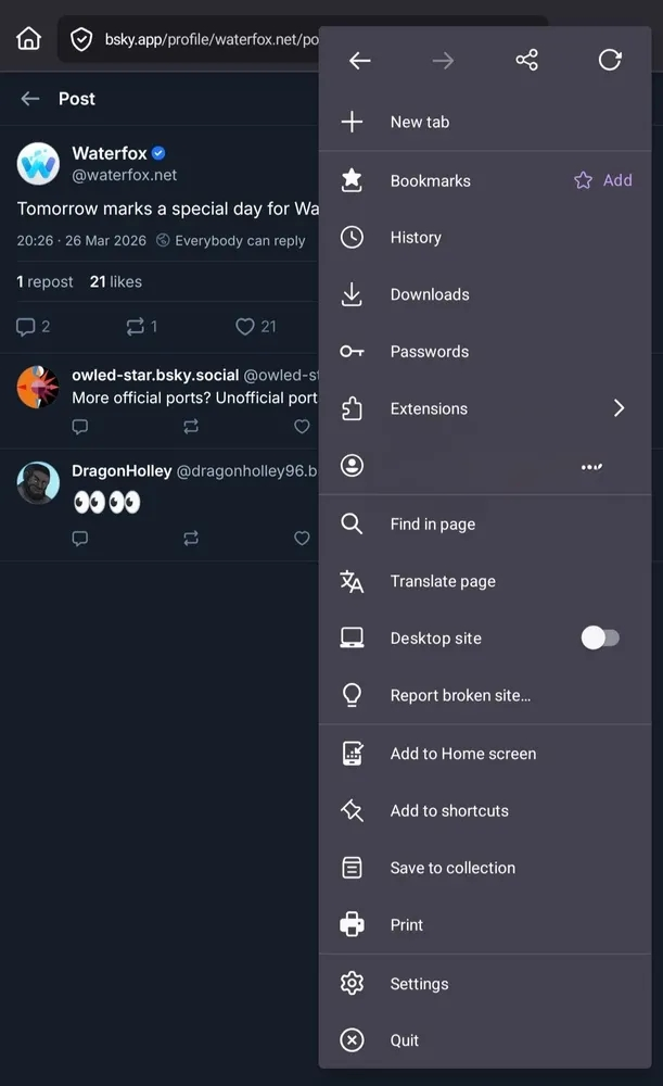 Ongoing bug that first started occuring on Firefox Nightly before being introduced to Firefox stable and now showing on forks such as Waterfox and Fennec