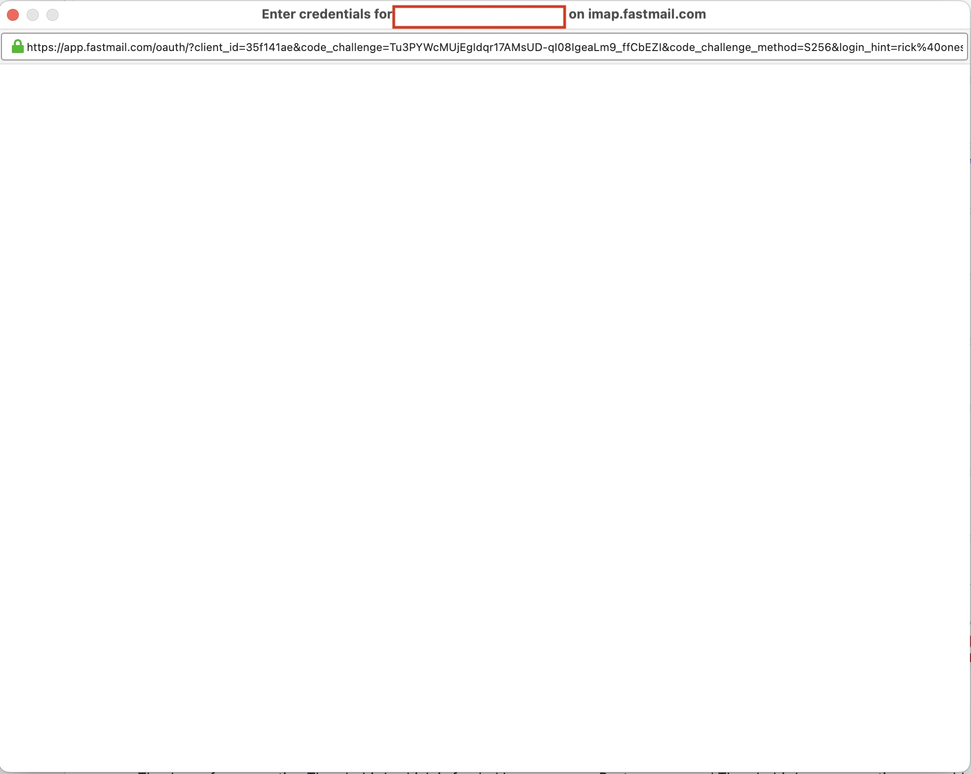 When I open Thunderbird, it asks for re-authorization. See my first screenshot. This page is blank, so I there's nothing I can do with it. It is blank even after I start my Macintosh in safe mode and then start Thunderbird in troubleshooting mode.