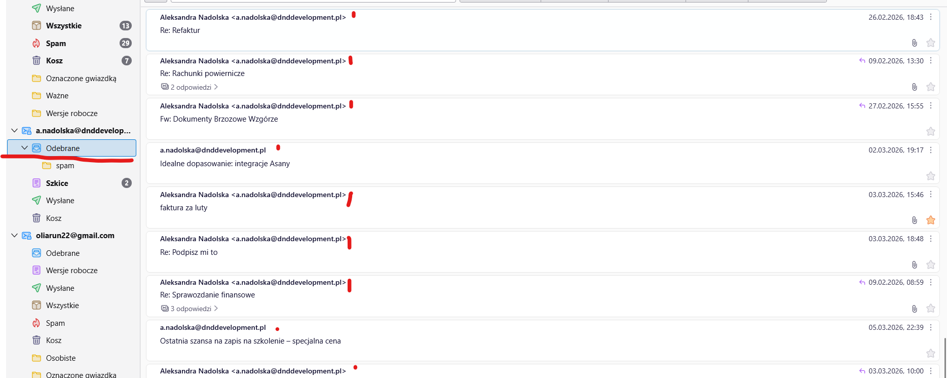 Mam problem, pierwsze parę kont dodanych do Thunderbird działa poprawnie i nie ma z nimi problemu. Natomiast pojawił się problem z kolejymi pocztami -nie widzę na nich połowy folderów, albo w sumie żadnych, ani wiadomości wysłanych, ani roboczych. Znowu na innej poczcie w odebranych, nie widzę nadawców - tylko własnego maila.