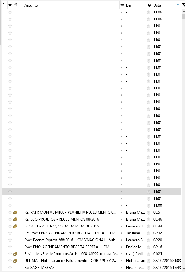Você já experimentou compactar pastas ? Nesse processo, os índices das caixas de email são recriados e, possivelmente, resolve esse problema.