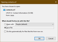 Hi all. Happy healthy holidays. New Dell Inspiron 16 Plus, windows 11. I have been trying to do the simple thing...we all know how...but it ain't working. Move my Gmail address book...export to New Dell laptop. Can get as far as hitting EXPORT...then IMPORT and dead in the water: Google>Contacts>Export>Export Outlook CSV (other choices are Google CSV and vCard for IOS contacts) >Export which then puts up a screen notification "Exporting". Here comes the stupid part: "YOU HAVE CHOSEN TO OPEN contacts.csv What should Firefox (my browser) do with this file open with (choose file) Excel (default) save file So I choose "save file". >enter name of file to save to, and I open "contacts", save file as ALL FILES Next I open Thunderbird. Tools>Import>menu of material to import and I chose IMPORT EVERYTHING to which a note opens "No application to import date from found". Grrrrr... Help? This was always so easy....thanks folks! Lars