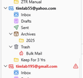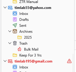 Attached is what Thunderbird is doing. If you look at the enclosed attachment you'll see two emails. One is for yahoo.com and the other is for my gmail.com accounts. Yahoo is in black and gmail is in red. Why is this?