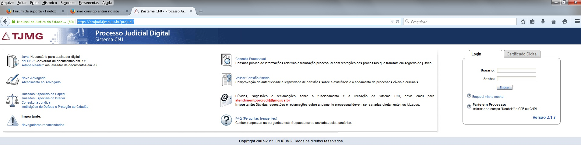 não consigo entrar no site tjmg.jus.br/projudi. por que?
