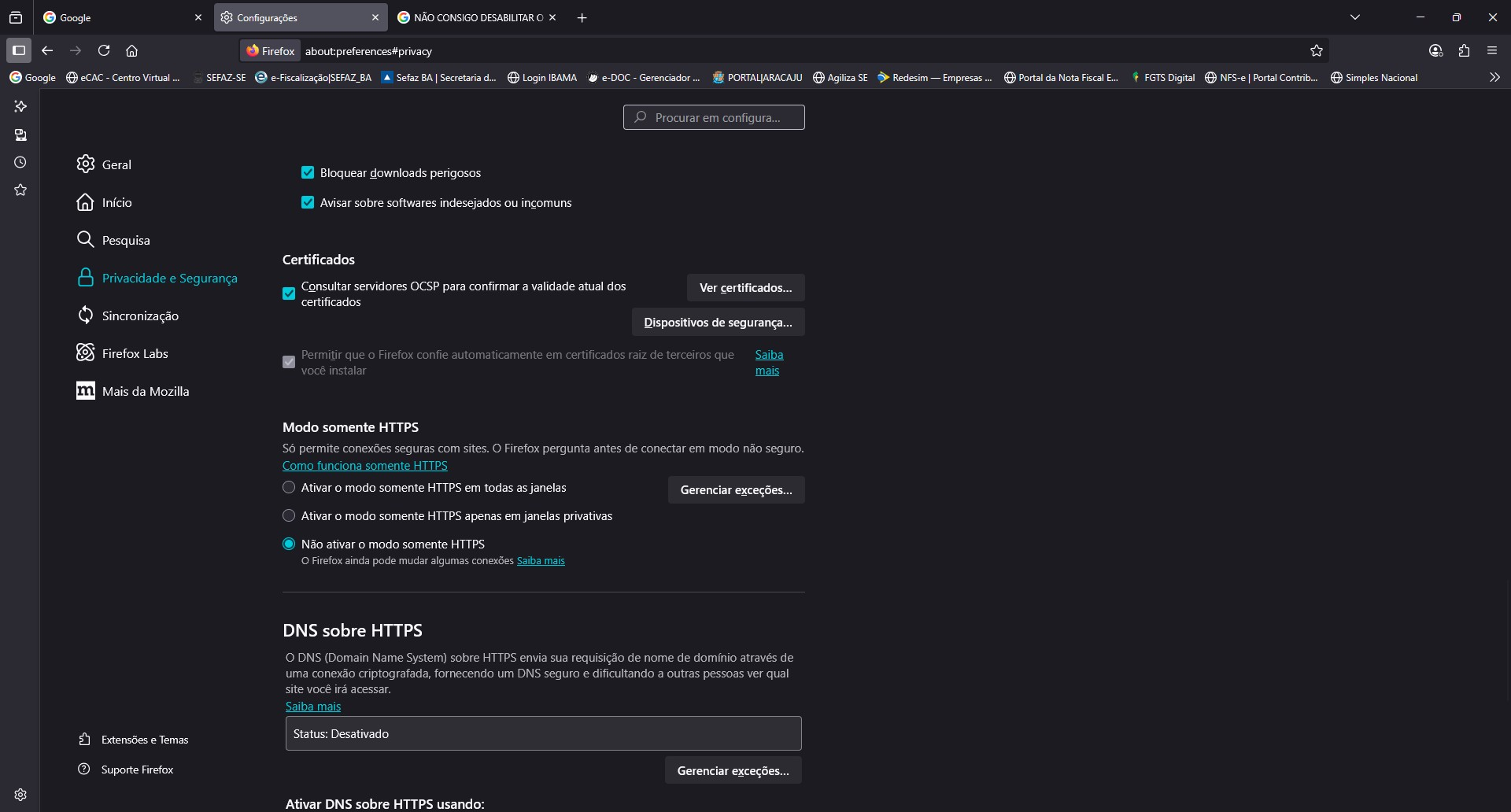Não consigo desmarcar a flag "Permitir que o Firefox confie automaticamente em certificados raiz de terceiros que você instalar", o sistema mostra desabilitado para edição. Preciso fazer alguma configuração específica ou de permissão para habilitar?