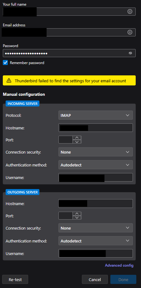 Unfortunately, Thunderbird failed to find the settings for another of my Exchange accounts (@concordia.ca) (see attached image).