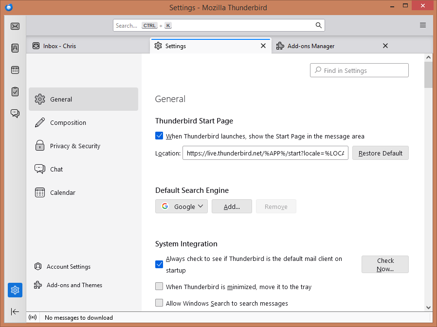 I recently moved my Thunderbird email from an old computer to a new. The move went well with one exception. For some reason, the Thunderbird frame color did not carry over. I really liked the old color and would like to get it back. How is that done? I have attached the old (brownish) and new (gray) color frame examples.