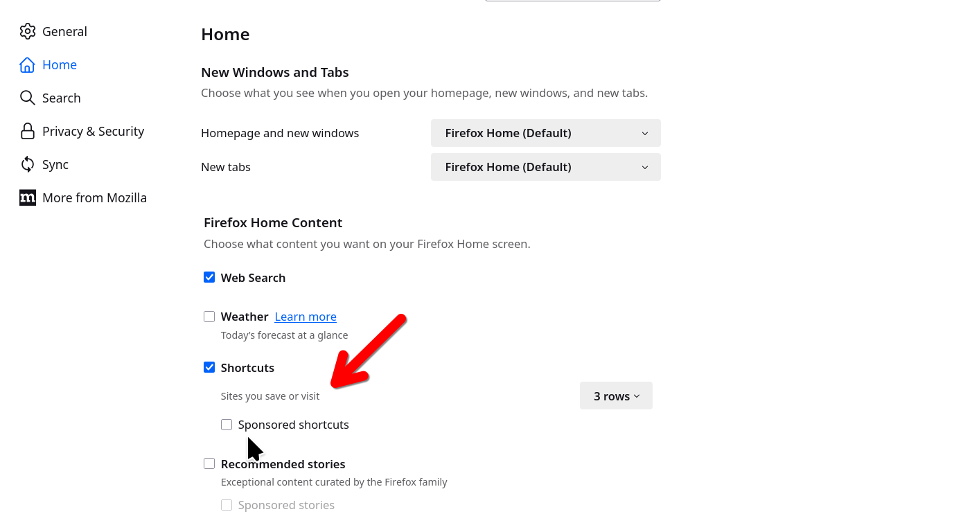 How to disable the sponsored shortcuts feature