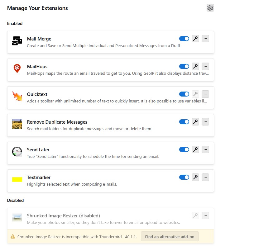I am running Windows 10 Pro version 22H2 fully updated through the July 2025 updates. The Thunderbird version is 141.0 (64-bit). No new Thunderbird add-ons have been installed.