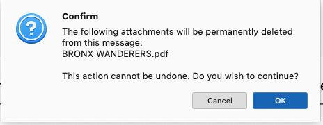 Maybe 15 or 20% of the time, after opening an attachment, and then trying to close the message, I get a warning that "The following attachment will be permanently deleted from this message..." See following screen shot. Anybody have a fix for this. Thanks, Gary
