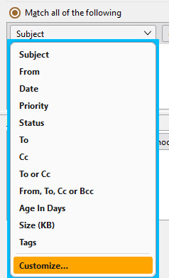If you're trying to filter on a particular header, you'll have to add it as a custom header (see picture). Creating filters to block spam is usually not an effective method. Better to block it in webmail by applying the mail provider's anti-spam measures.