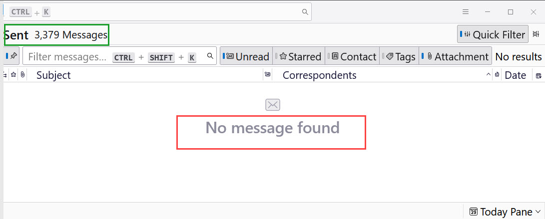 When I clicked Quick Filter, it listed the 28 messages in the Inbox. I haven't tried to read any of them.