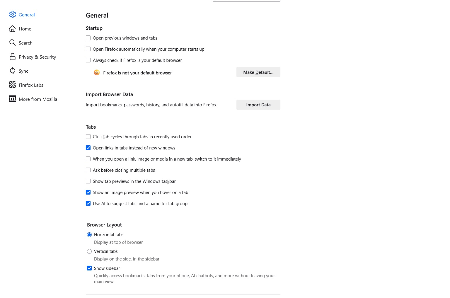 You seem to be trying to adjust Thunderbird from within Firefox.