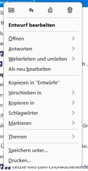 Wenn ich auf eine eingegangene e-mail doppelklicke öffnet sich das Fenster für Antworten bzw. Verfassen und nicht wie gewünscht nur das Fenster zum lesen der e-mail. Bei einem Rechtsklick erscheint das Menü entsprechend Anhang. Das Verhalten zeigt sich bei einem Account von ...@freenet.de NICHT bei zb ...@t-online.de Gibt es Abhilfe?