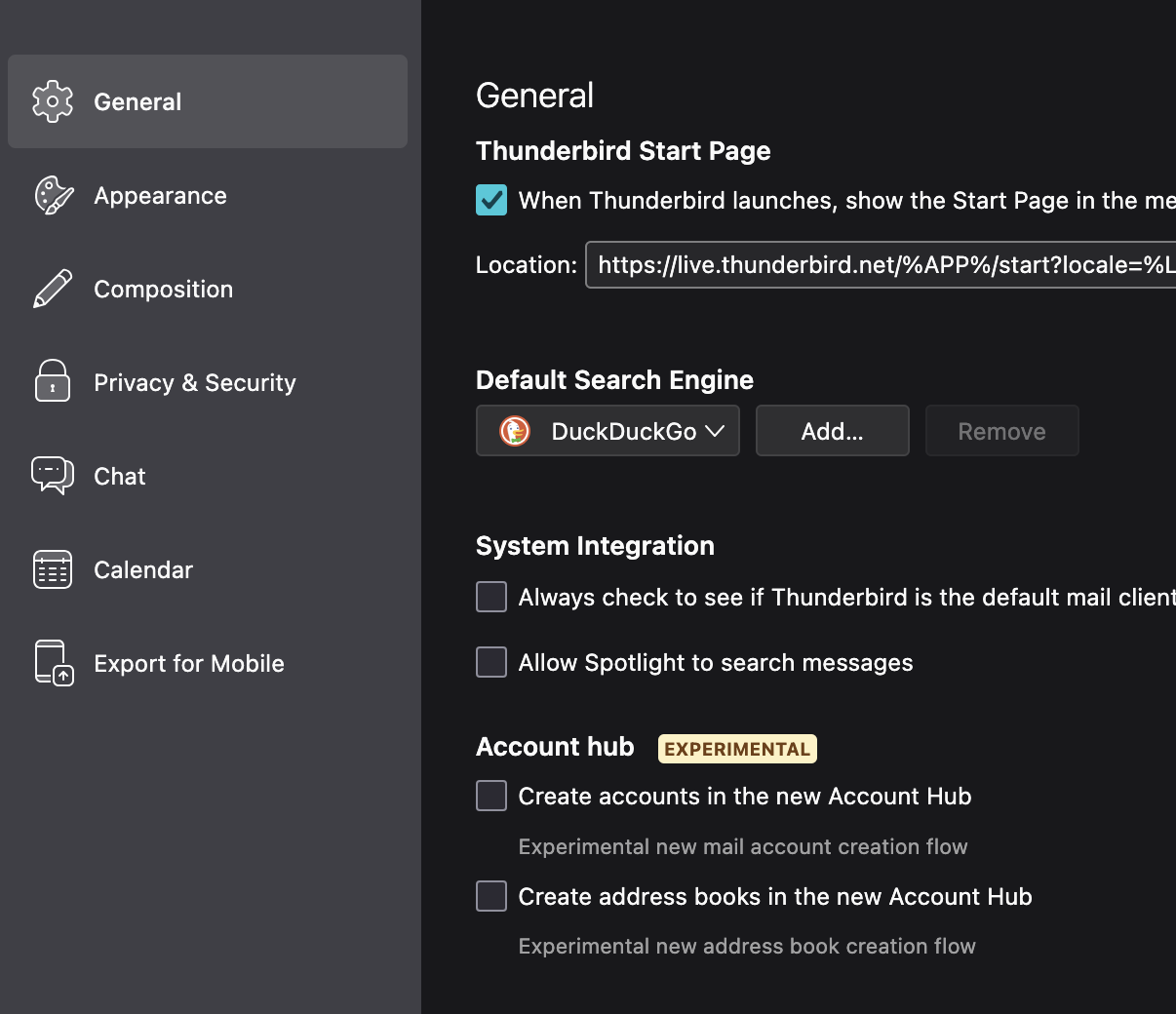 Same issue here 143.0.1 (64-bit) on OSX 13.7.7, even after turning off the experimental "Account hub." The crash happens when either attempting to add a new email account via File/New/email account or Account Settings/+New Account Any other suggestions?