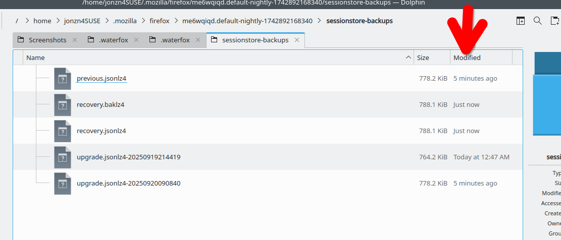 Lets start with you posting a screenshot of the files in your sessionstore-backups folder in your profile folder. In the detailed view showing date timestamp. see screenshots of mine What day did the issue start?