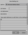 Please be more specific. Look at the screenshot I posted in my comment above. What happens when you click the 'Create a new mailing list' button? You should be presented with the 'New Mailing List' screen. Does that happen?