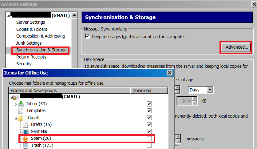 In efforts to save disk space on user PC's we would like to deselect the SPAM folder from our users Advanced Synchronization & Storage settings. Rather than manually change the setting on 200+ user PC's, are there any methods available to us for making this change on many accounts / systems within the same domain? We are using Thunderbird with Gmail / IMAP.