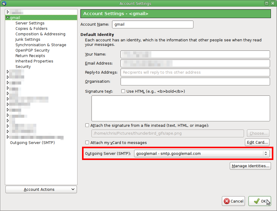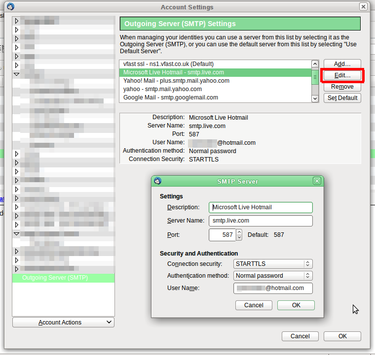 Then go to the incoming account, and under Account Settings, change the Outgoing Server setting to use your newly added smtp server.